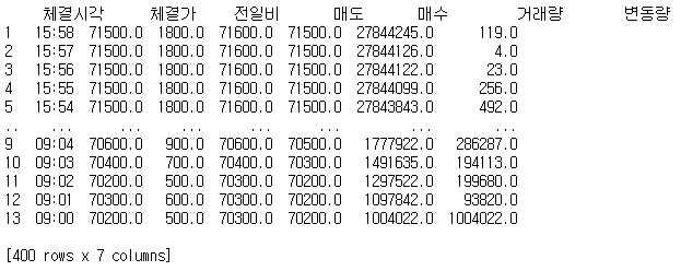 네이버 금융에서 시간별 시세(분봉)를 가져와 보도록 하겠습니다.