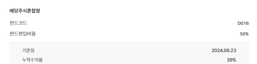 두 번째 배당주식혼합형의 누적수익률은 그나마 조금 높아 39%이다. 연수익률로 따지면 2.78%이다.