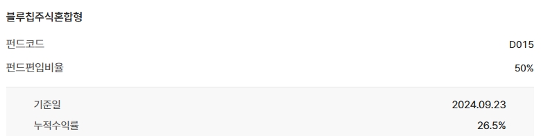 먼저 블루칩주식혼합형의 누적수익률은 26.5%이다. 연수익률이 1.89%이다.